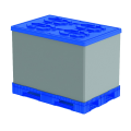Сборно-разборный контейнер состоит из полимерного поддона 1200×800 мм, крышки и модульных стенок высотой от 350 до 1200 мм. Полимерные стенки прочно стыкуются с поддоном и крышкой, плотно входят в специальные углубления-прорези, обеспечивая надежность при грузоперевозках. Конструкция не позволяет элементам смещаться и скользить при штабелировании.