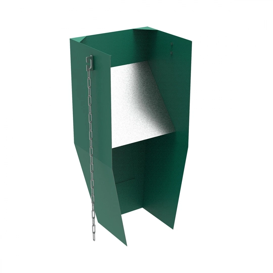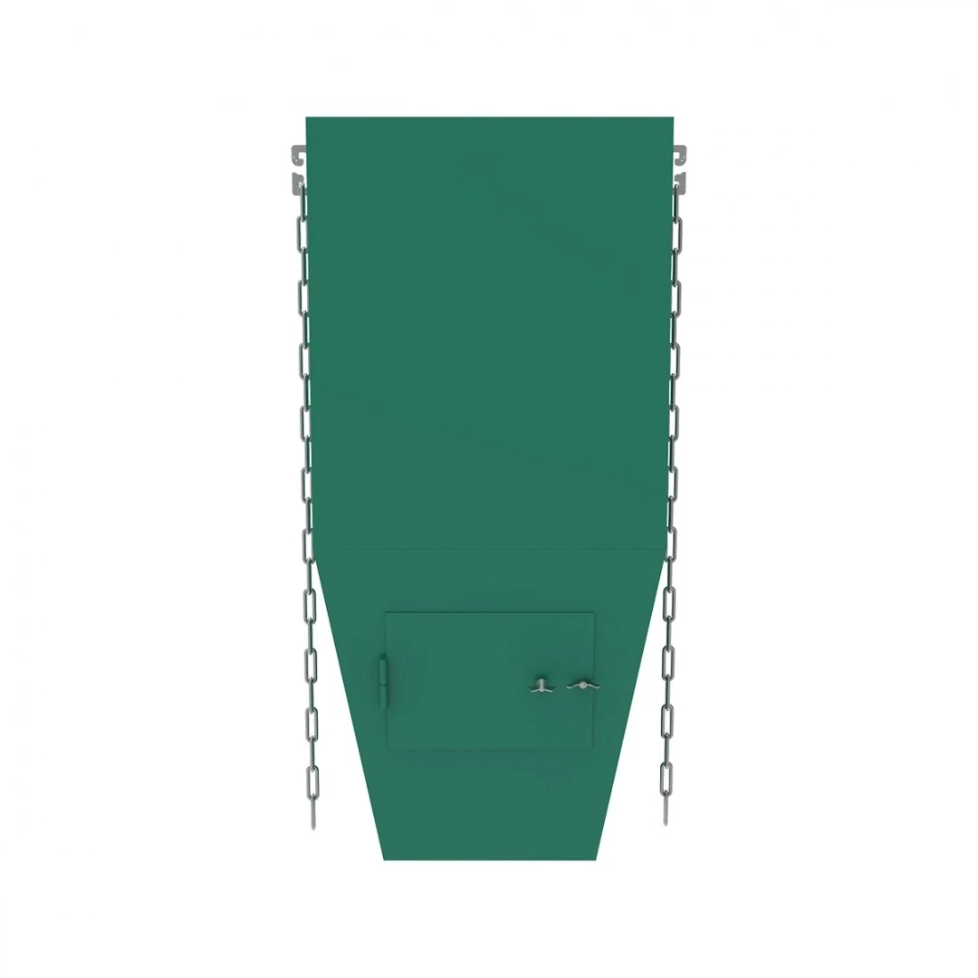 Данная модель гасителя изготовлена из металла толщиной 1,5 мм и имеет в составе специальную ревизионную дверцу, через которую можно осуществить устранение затора крупных элементов мусора в случае необходимости. Дверца расположена в задней части изделия, что обеспечивает комфортный доступ обслуживающего персонала заказчика.