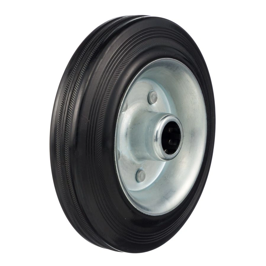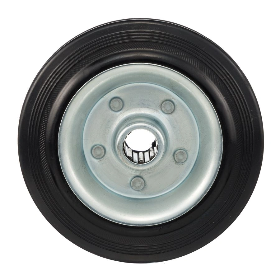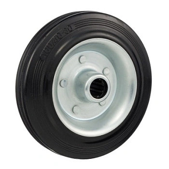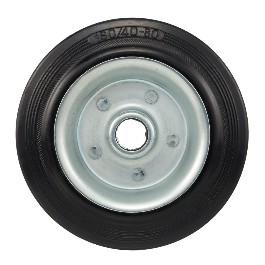 Колесо из черной резины 4000-160, диаметр 160мм.,под ось 20мм. Колесо из черной литой резины. Центр из стального оцинкованного обода из штампованной стали. В оси колес роликовый подшипник. Колеса из черной резины, центр из двух гальванизированных дисков из штампованной стали. Роликовый (игольчатый) подшипник расположен в углублении, выдавленном под прессом, и содержит цилиндрические ролики подшипника. Возможно применение на относительно грубых полах складов, заводов, производственных и строительных площадках. Данные колеса можно использовать на неровных поверхностях, во влажной окружающей среде и использовании вне помещения, не рекомендуется применять в среде с органическими растворителями, хлорированными веществами, гидрокарбонатами и минеральными маслами. Температура эксплуатации от -20 до +70С.