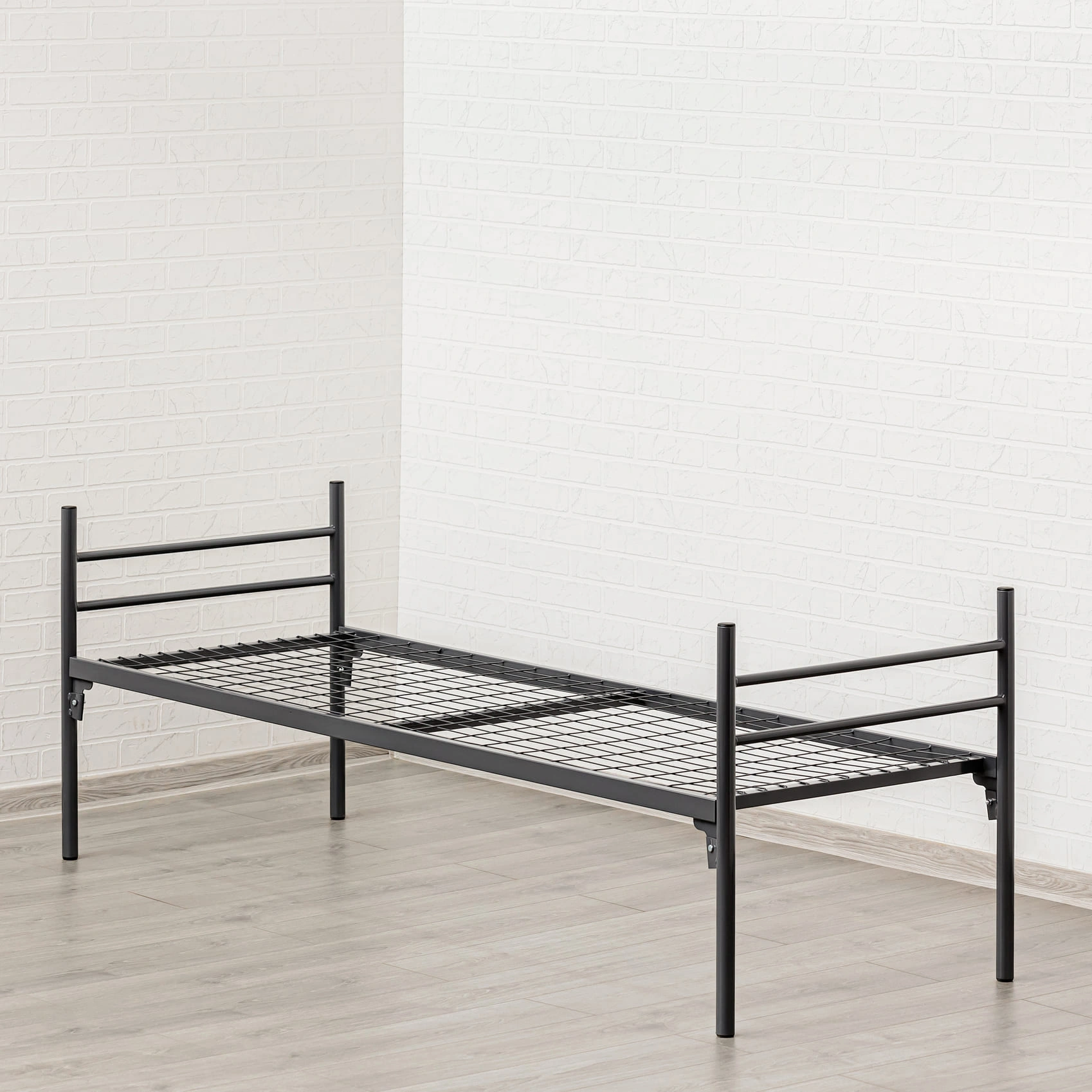 Кровать разборная из двух боковых стоек и спального места, крепящихся меж собой соединением «клин-петля»., обеспечивая надежное и просто соединение. Стойки изготовлены из круглой трубы Ø32 мм., спальное место выполнено из профильной трубы 20х40 мм. с одним поперечным усилением 25х25, сетка с ячейкой 100х50 мм. Все элементы кровати покрыты износоустойчивой полимерно - порошковой краской сероватого цвета. Допускаемая нагрузка на спальное пространство до 120 кг.Условия оплаты и отгрузки