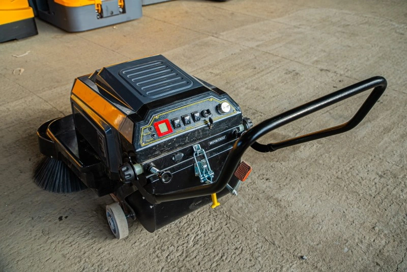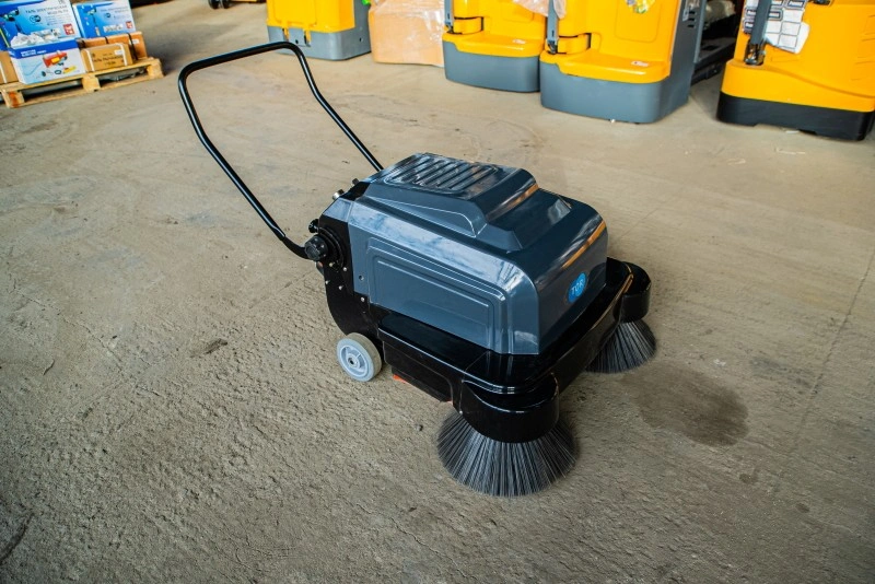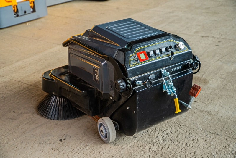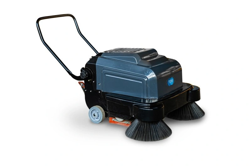 TOR A100 — чистота без пыли, шума и лишних усилий. Современное решение для профессиональной уборки. TOR A100 — современная и производительная подметальная машина с электроприводом, оснащенная тремя щетками и системой всасывания пыли для глубокой сухой уборки. Ширина уборки 100 см, производительность до 4000 м²/час — обеспечивает быстрое и качественное очищение больших площадей. Аккумулятор 12 В / 100 А·ч гарантирует длительную работу без подзарядки. Удобная панель управления с цифровым счетчиком моточасов, фильтр высокой степени очистки и система удаления пыли с фильтра педалью делают эксплуатацию максимально комфортной. Контейнер на 22 литра с быстрым доступом позволяет быстро опорожнять машину. Где используется? Идеальна для уборки производственных цехов, складов, торговых залов, логистических центров, гаражей, ангаров, офисных помещений и других объектов с твердым покрытием. Подходит как для внутренних, так и для внешних работ — эффективно удаляет не только крупный мусор, но и мелкую пыль из щелей и труднодоступных мест благодаря мощному всасывающему мотору. Основные преимущества: - Высокая производительность — до 4000 м²/час за счет ширины уборки 100 см и трехщеточной системы. - Электропривод — бесшумная работа, отсутствие выхлопов, идеально подходит для закрытых помещений. - Мощный всасывающий мотор — удаляет пыль, песок, стружку и мелкий мусор даже из щелей и трещин. - Фильтр высокой степени очистки — обеспечивает чистый воздух при работе, предотвращает выброс пыли в помещение. - Педальное устройство очистки фильтра — позволяет быстро и легко очистить фильтр без разборки машины. - Емкий аккумулятор 12 В / 100 А·ч — обеспечивает длительную автономную работу. - Контейнер на 22 литра с системой быстрого доступа — минимизирует время на обслуживание. - Удобная панель управления — с цифровым счетчиком рабочих часов для контроля эксплуатации. - Компактность и маневренность — подходит для работы в узких проходах и ограниченных пространствах. Комплектующие (при необходимости замены): - Набор боковых щеток 400 мм для подметальных машин A100 (2 шт) — артикул 1025554 - Основная щетка 435 мм для подметальных машин A100 — артикул 1025555 - Фильтр 332×162×50 мм для подметальных машин A100 — артикул 1025557
