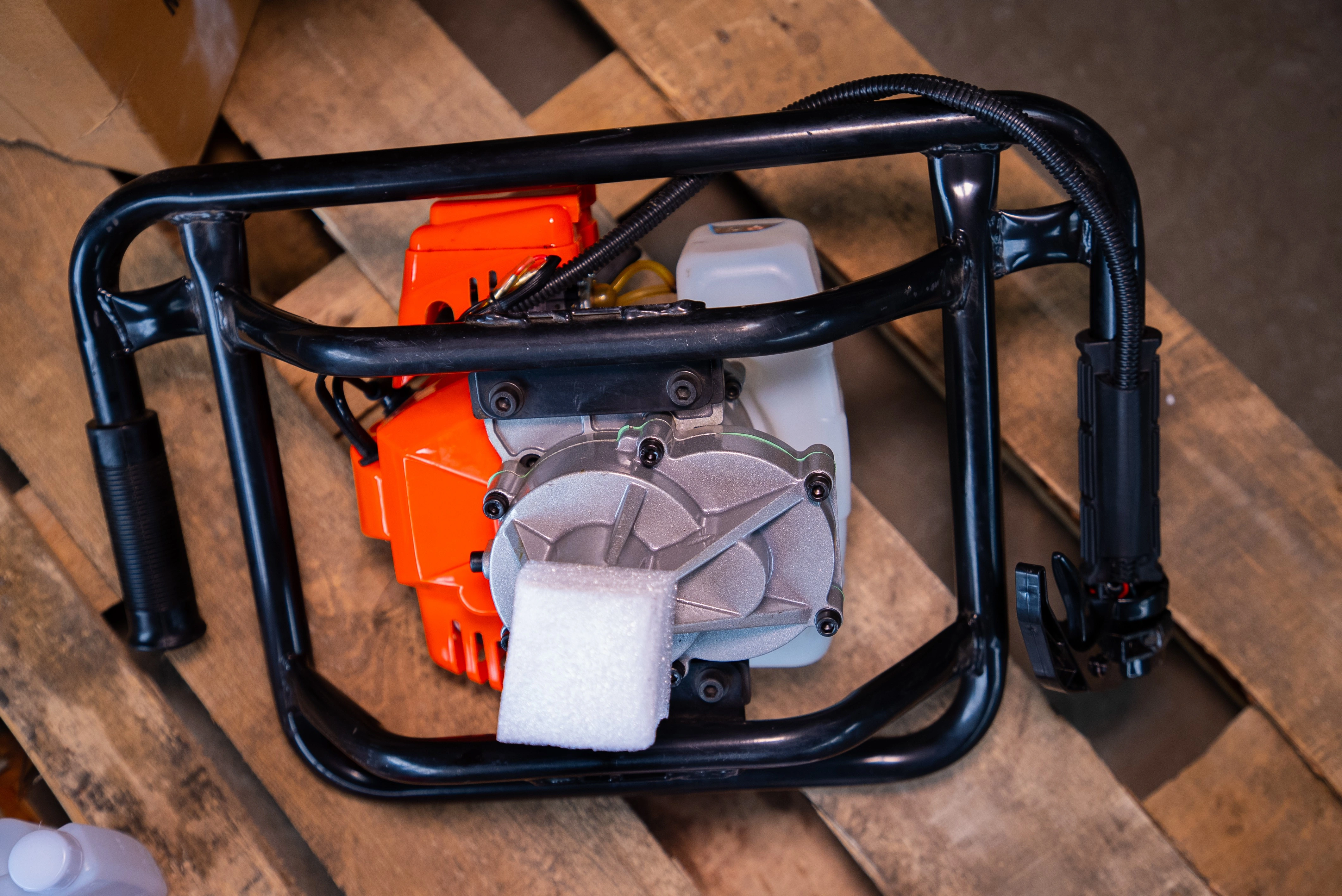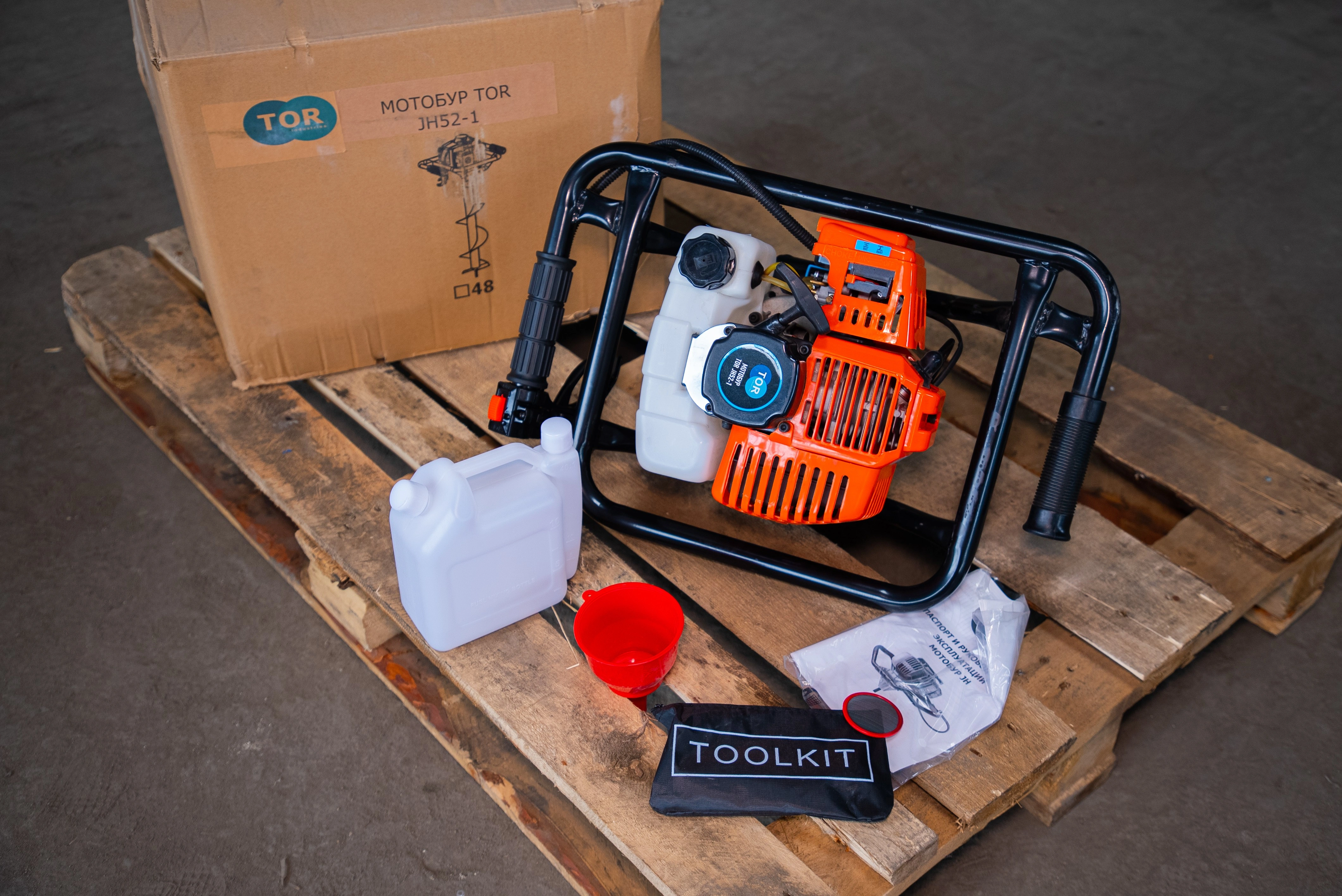 Мотобур TOR JH52-1 без шнека с объемом двигателя 52см3 и максимальной мощностью 1,8 кВт. - Управление рассчитано на 1 оператора - Все органы управления удобно расположены на рукояти - 2тактный бензиновый двигатель неприхотлив к условиям работы - Вместительный бензобак 1,3 л - Подходит для работы в теплое и холодное время года - Простой и безопасный в использовании Применяется при строительстве фундаментов, заборов, установке опор и столбов, бурении лунок и т.д. Может бурить отверстии в мёрзлом земле, льду, глине, торфе, песке и других видах грунта. Поставляется без шнека. Шнеки и удлинители в ассортименте: Шнек 100*800 мм для мотобуров JH 1027877 Шнек 150*800 мм для мотобуров JH 1027878 Шнек 200*800 мм для мотобуров JH 1027879 Шнек 250*800 мм для мотобуров JH 1027880 Шнек 300*800 мм для мотобуров JH 1027881 Шнек двухзаходный 200*800 мм для мотобуров JH 1027890 Шнек двухзаходный 150*800 мм для мотобуров JH 1027891 Удлинитель 500 мм для шнека мотобуровов JH 1027887 Удлинитель 900 мм для шнека мотобуровов JH 1027889