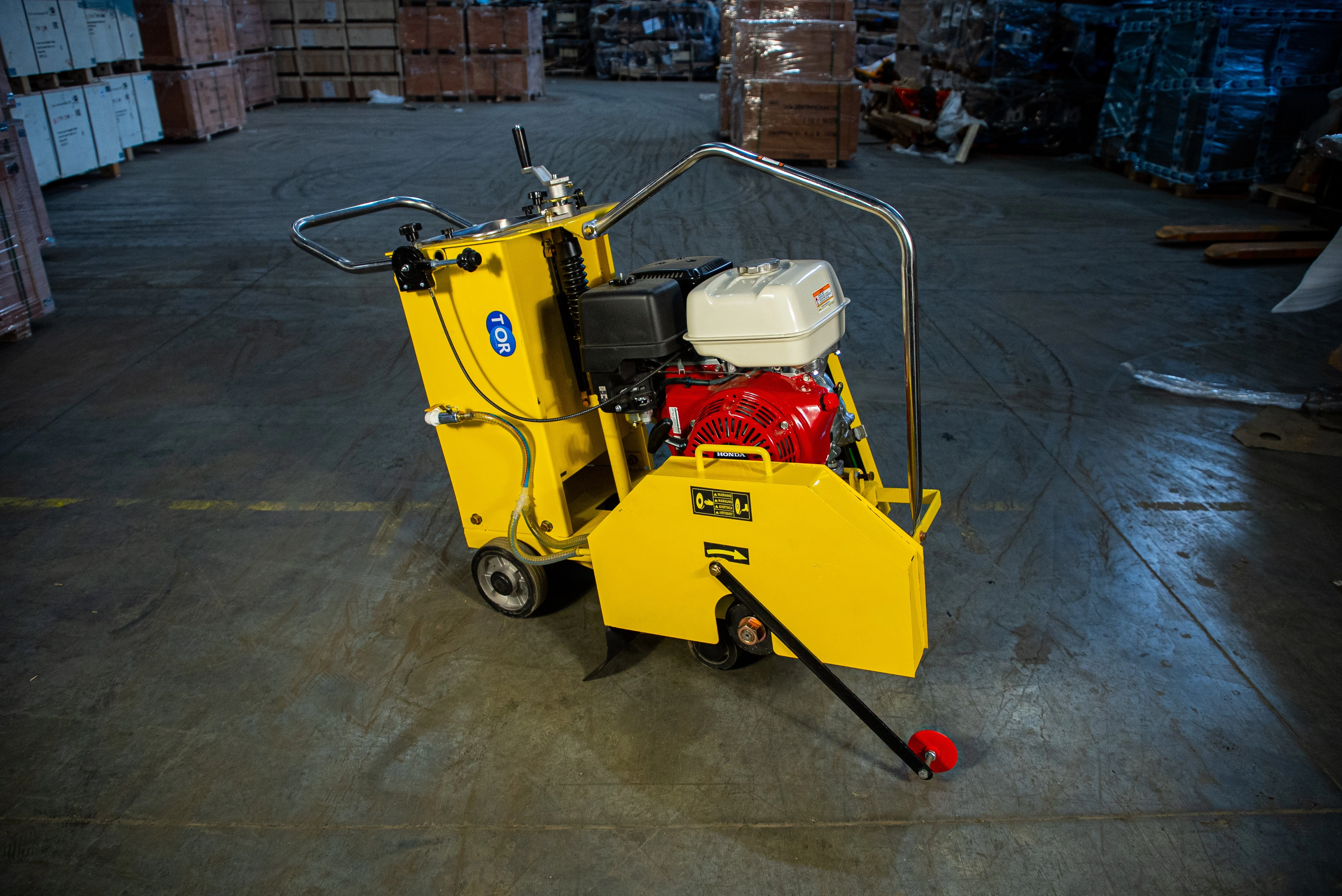 Резчик швов TOR HQR500A-2 (Honda) оснащен бензиновым двигателем Honda GX390. Диаметр, используемых дисков от 350 до 500 мм позволяет достигать максимальную глубину реза до 180 мм. Встроенная система подачи воды снижает образование пыли при проведении работ и охлаждает диск, продляя его срок службы. Подробные технические характеристики представлены в таблице:Преимущества резчиков швов TOR HQR500A-2: - Мощный и надежный двигатель Honda GX390 мощностью 11,7 л.с. - Применяется для работы с дисками диаметром 350-500 мм - Оснащен баком для воды для снижения количества пыли при проведении работы, а также для охлаждения режущего диска - Точная настройка глубины реза - Режущий диск укрыт защитной стальной крышкой - Прочная рама из стальной трубы для удобной и безопасной транспортировки В нашем интернет магазине вы можете выгодно приобрести бензиновый резчик швов по бюджетной цене, получить профессиональную консультацию, а также помощь в подборе. Складская и строительная техника производства TOR – это сочетание современных разработок и решений, проверенных временем. Так компания добивается высокого качества и простоты использования своего оборудования. Мы постоянно работаем над оптимизацией ассортимента. В модельном ряду найдутся как экономичные модели, так и модели для интенсивных нагрузок.