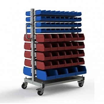 Стеллаж разработан специально для систематизации, хранения различных комплектующих, деталей, запчастей, крепежных и строительных материалов: болты, гайки, сверла, подшипники, метизы, фитинги, сантехника, зажимы, заклепки и т.д.
