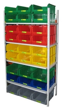 Полочный стеллаж с ударопрочными ящиками типа V подойдет для хранения инструмента, деталей, запчастей или различных мелочей. Стеллаж идет в комплекте с ударостойкими пластиковыми ящиками серии "V" из полипропилена. Цвета ящиков можно указать в заказе. Дополнительно можно установить 3 ящика на пол (в стоимость не входят и продаются отдельно).