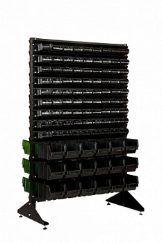Стенд разработан специально для систематизации, хранения различных комплектующих, деталей, запчастей, крепежных и строительных материалов: болты, гайки, сверла, подшипники, метизы, фитинги, сантехника, зажимы, заклепки и т.д.