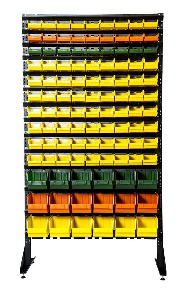 Стенд разработан специально для систематизации, хранения различных комплектующих, деталей, запчастей, крепежных и строительных материалов: болты, гайки, сверла, подшипники, метизы, фитинги, сантехника, зажимы, заклепки и т.д.