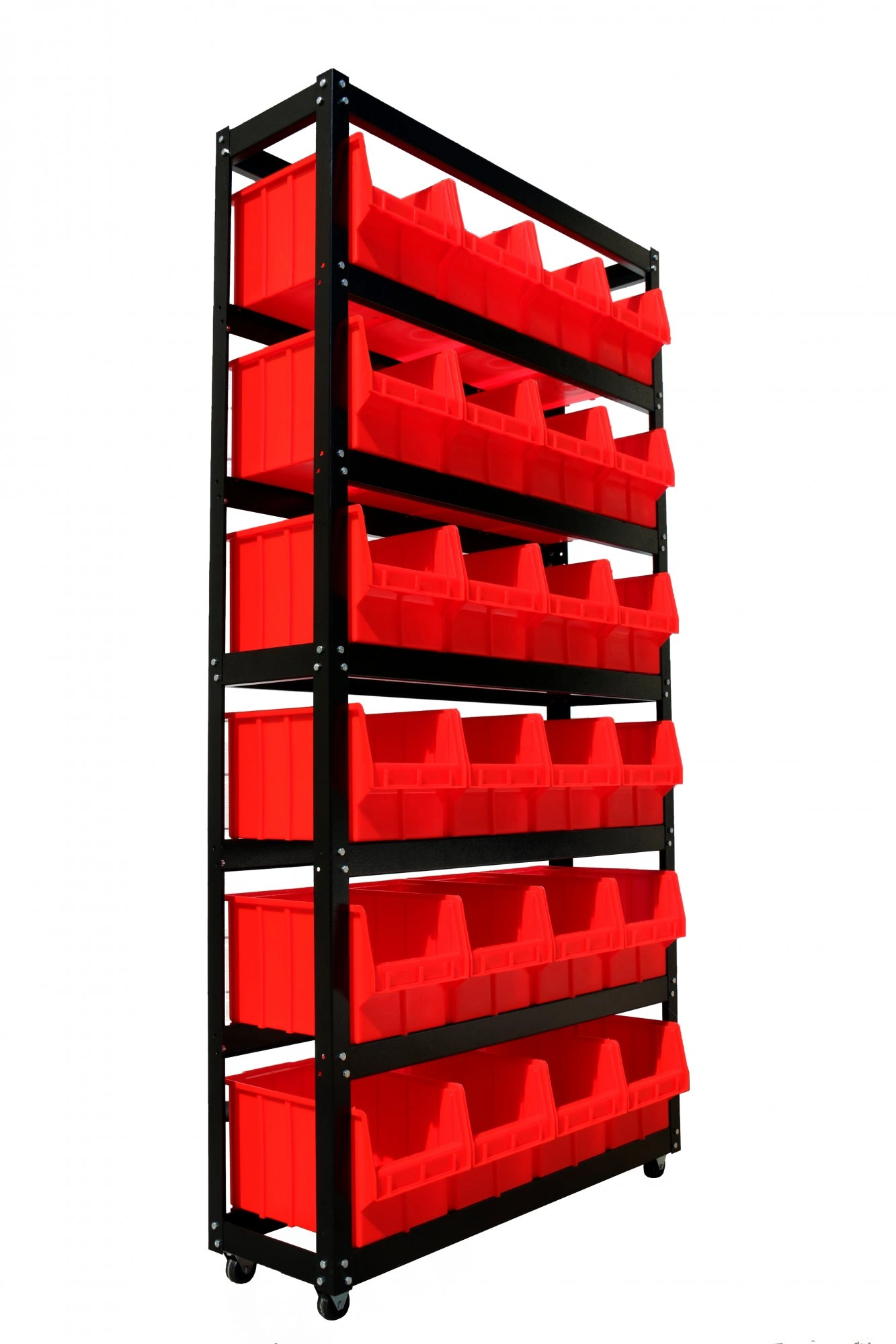 Складской стеллаж с колесами, готовая конструкция для хранения мелких деталей, запчастей, метизов - на складе, в гараже, в торговых залах и т.п.