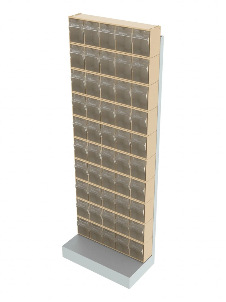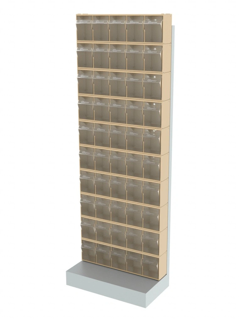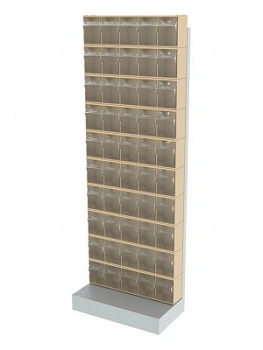 Стойка бежевая напольная Стелла-техник 404-00-00-10-B (610х325х1650) представляет собой удобную систему хранения на основе откидных коробов. Стойка подойдет для выставочных залов, магазинов, офисов, складов. Комплектация: Рама FOX (610х325х1650) V404 напольная односторонняя с основанием - 1 шт; Короб откидной Стелла-техник F-600-5 , 600х140х168мм, 5 ячеек, красный, прозрачный - 10 шт.; Упаковка. Преимущества: Металлическое основание; Значительная устойчивость; Хорошая вместимость; Длительный срок службы.