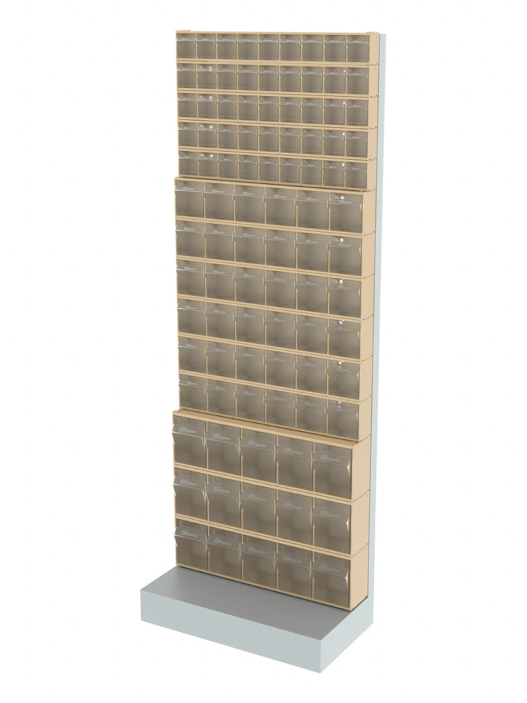 Стойка бежевая напольная Стелла-техник 404-05-06-03-B (610х325х1650) представляет собой удобную систему хранения на основе откидных коробов. Стойка подойдет для выставочных залов, магазинов, офисов, складов. Комплектация: Рама FOX (610х325х1650) V404 напольная односторонняя с основанием - 1 шт.; Короб откидной Стелла-техник F-600-9 , 600х68х78мм, 9 ячеек, красный, прозрачный -5 шт.; Короб откидной Стелла-техник F-600-6 , 600х96х112мм, 6 ячеек, красный, прозрачный – 6 шт.; Короб откидной Стелла-техник F-600-5 , 600х140х168мм, 5 ячеек, красный, прозрачный – 3 шт.; Упаковка. Преимущества: Металлическое основание; Значительная устойчивость; Хорошая вместимость; Длительный срок службы.