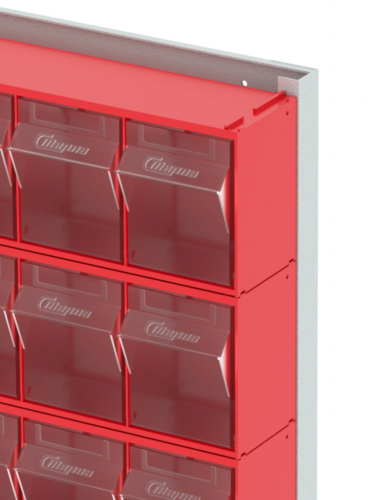 Стойка настенная/настольная Стелла-техник 401-00-00-03 (610х150х500) представляет собой удобную систему хранения, которая подойдет для выставочных залов, магазинов, офисов, складов. Основание можно установить на стол или закрепить на стену, привернув его анкерными болтами или саморезами (в комплект не входят). В комплект стойки 401-00-00-03 входит: Рама FOX (610х150х500) V401 - 1 шт.; Короб откидной Стелла-техник F-600-5 , 600х140х168мм, 5 ячеек, красный, прозрачный – 3 шт.; Упаковка. Преимущества стойки: Металлическое основание; Значительная устойчивость; Хорошая вместимость; Длительный срок службы.
