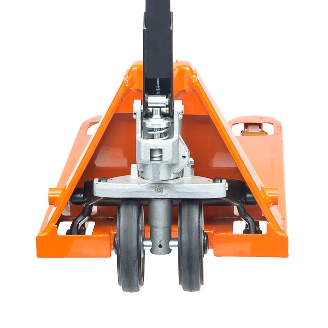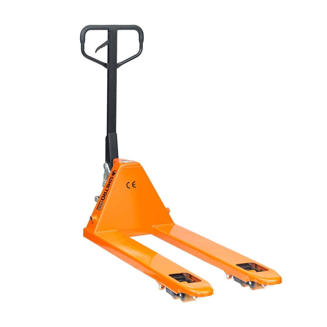 SIMETRO PRO-AC-30-1.15 – ручная модель с весом 86 кг, грузоподъемностью 3 тонны, удлиненными вилами (1150 мм) для перевозки 1-2 европоддонов с товаром за раз. Тележку можно использовать как основной транспортировщик грузов на небольших складах или в качестве дополнения погрузчикам/штабелерам. При радиусе разворота в 1216 мм тележкой легко управлять и маневрировать.