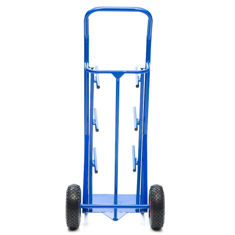 Тележка КДВ-55-250-И удобная модель для одновременной перевозки четырех баллонов (19 л.) с водой. На каркасе тележки установлены ряды перекладин и задняя планка для надежной фиксации бутылей параллельно земле (под небольшим наклоном). Баллоны кладутся друг на друга как на стеллаже, что позволяет вытаскивать каждый из них отдельно.