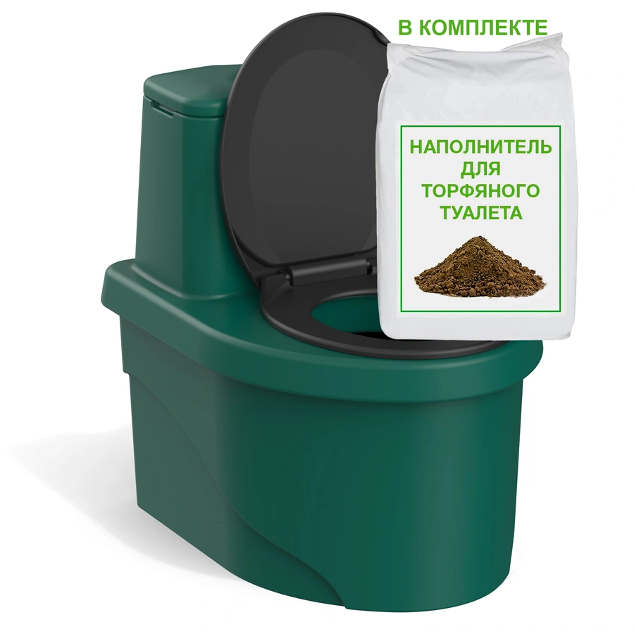 Торфяной туалет РОСА зеленого цвета позволяет с удобством решать организацию туалета на загородном отдыхе. Рассчитан на регулярное использование. Для функционирования подключение электричества и воды не требуется.