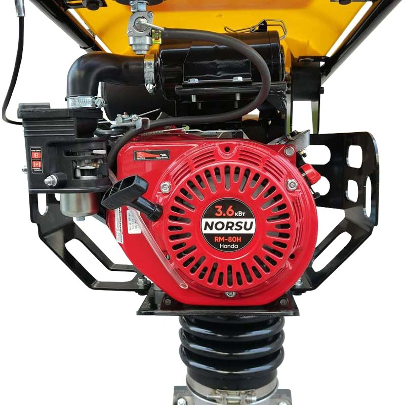 Вибротрамбовка NORSU RK-80H — это бензиновая модель с объемом топливного бака 2.8 л. Используется для уплотнения грунтов на глубину до 120 мм. Востребована при проведении дорожных работ, устройстве фундаментов, уплотнении краев тротуаров, пространства вокруг люков, при прокладке коммуникаций и создании ландшафтных композиций. Оборудована надежным двигателем NORSU GX160.
