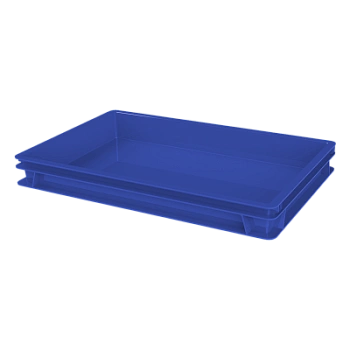 Контейнер со сплошными стенками и дном успешно используется в пекарнях для хранения теста для выпечки и пиццы. Штабелирование ящиков в сплошной версии обеспечивает плотное прилегание ящиков друг к другу и исключает попадание пыли внутрь контейнера.